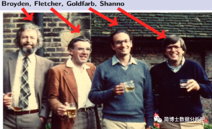 这个算法和DFP一样,也是由4个人一起创造的,分别是 Broyden、Fletcher、Goldfarb和Shanno。