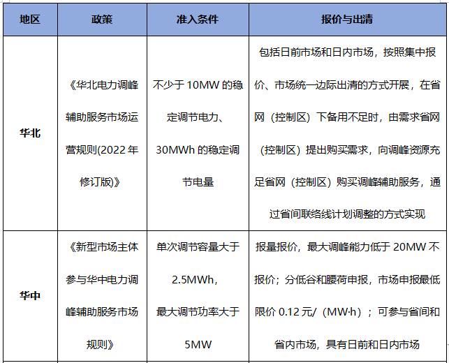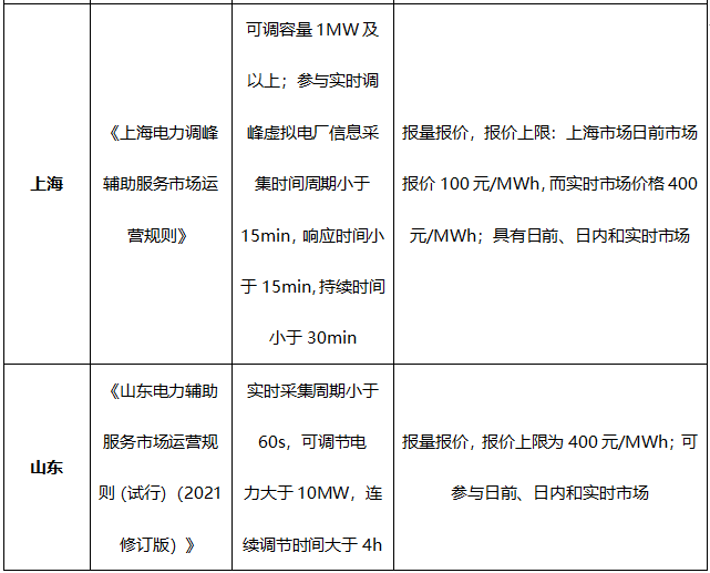 调峰服务指在电网调峰能力不足时段调整自身用电曲线达到缓解电网负荷高峰资源不足的效果。目前我国华北、华中、上海、山东、浙江和甘肃等地已颁布相关法规对虚拟电厂参与调峰市场进行了准入、报价与出清和结算方式等方面的规定。