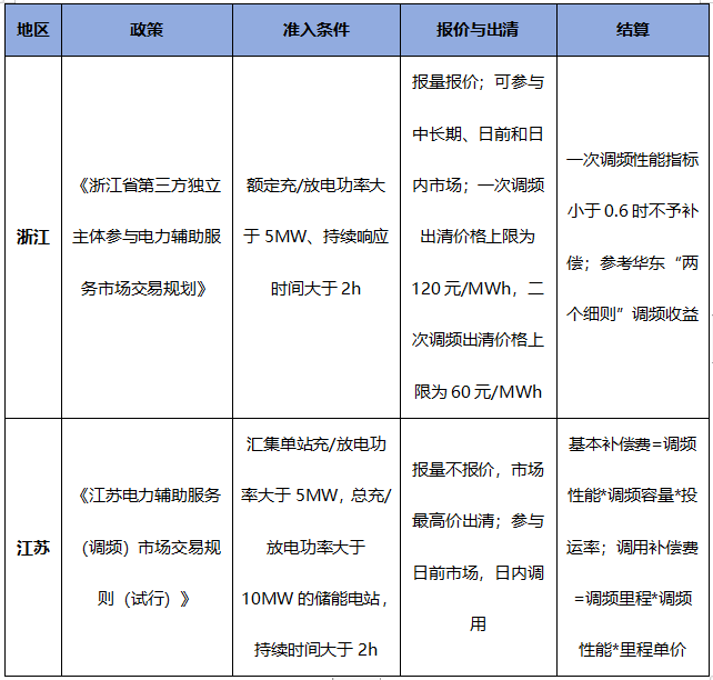 调频服务主要包括一次调频和二次调频,目前仅江苏和浙江两省明确了虚拟电厂可分别作为第三方独立主体、综合能源服务商的身份参与调频辅助服务市场。
