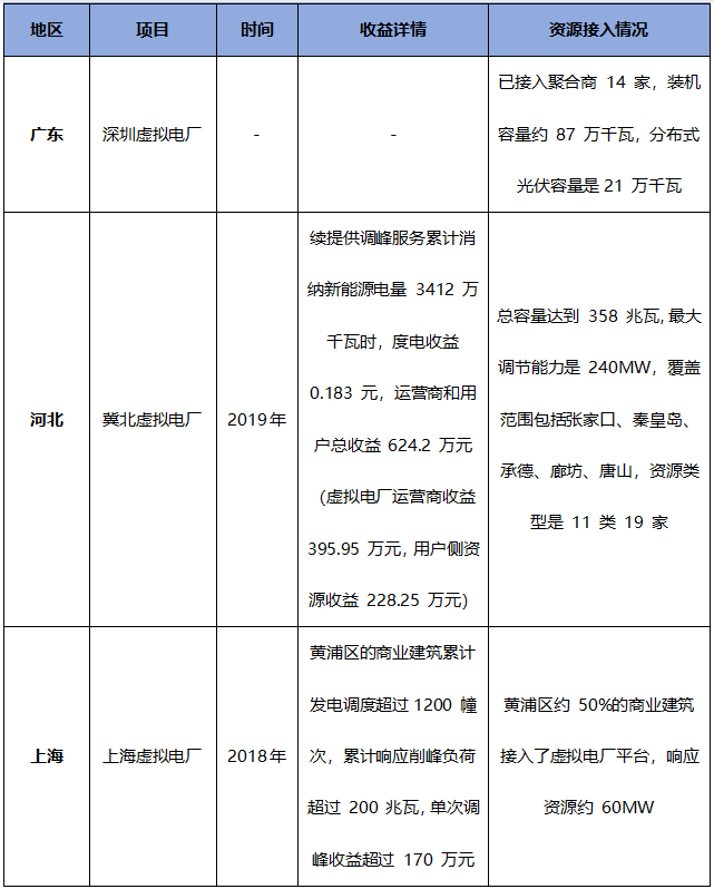 我国虚拟电厂主要以试点项目为主,项目收益尚不可观,仍处前期聚合控制技术验证和参与系统响应阶段。当前已运行项目的控制功能已完成技术验证且可接入现行调度安全系统接收调度指令并完成相应调峰调频功能,但因规模较小和补偿水平较低的原因,虚拟电厂收益并不可观。