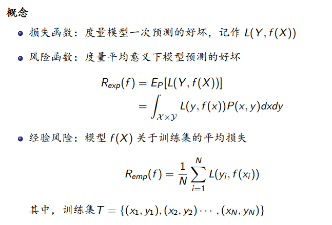 策略其实就是一种学习准则,用来选择最优模型的。想要选择模型,那么一定要知道如何度量模型的好坏。所以,这里先要引入几个概念。