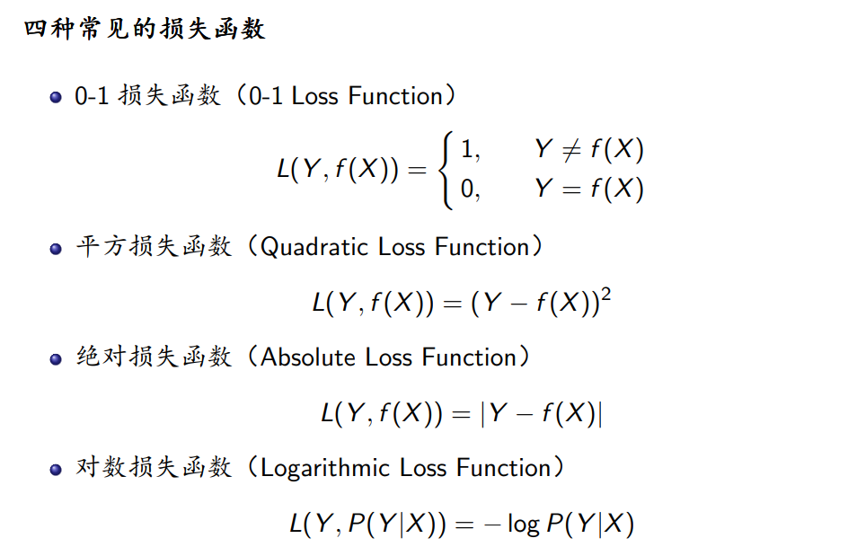 先看一下损失函数,损失函数是用来度量模型一次预测好坏的,Y代表的是真实的输出,f(X)代表的是给定输入X的情况下,利用模型f得到的一个预测值,所以,这个损失函数是用来计算真实值与预测值之间差异的。