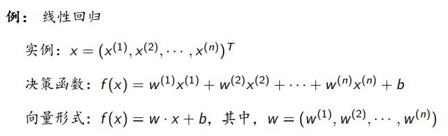 举一个例子,假如遇到一个线性回归问题,实例、决策函数如下所示: