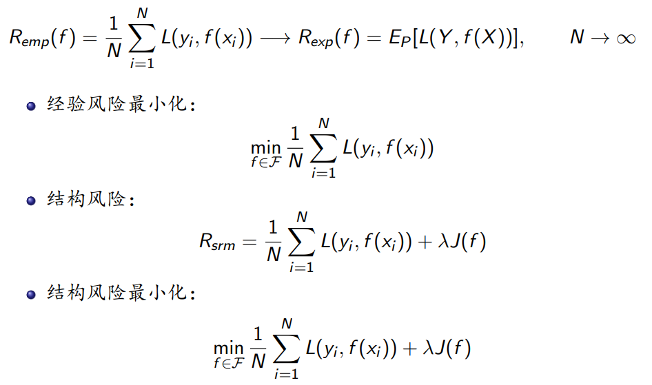 但当样本容量N比较小的时候,仅仅经验风险最小化,容易造成过拟合的现象。于是引入结构风险的概念。结构风险是在经验风险的基础上加了一个惩罚项,惩罚项针对的是模型的复杂度,也就是这里的模型越复杂,J(f)就越大,当然模型越简单,J(f)就越小。结构风险的惩罚系数,可以平衡经验风险和模型的复杂度。结构风险最小化,则是选取一个使结构风险最小的模型。