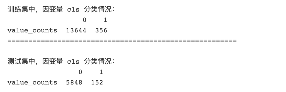 #测试集因变量 cls 分类情况:Counter({0: 5848, 1: 152})