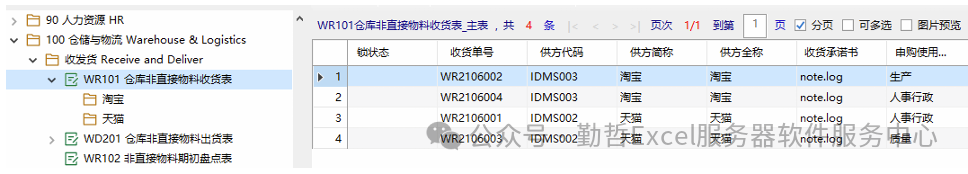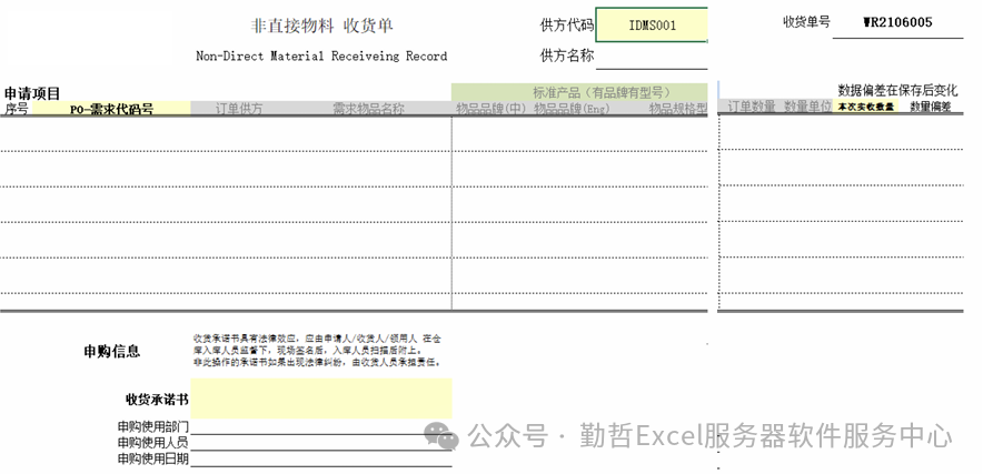 WR101 仓库非直接物料收货表 用于对非直接物料收货。