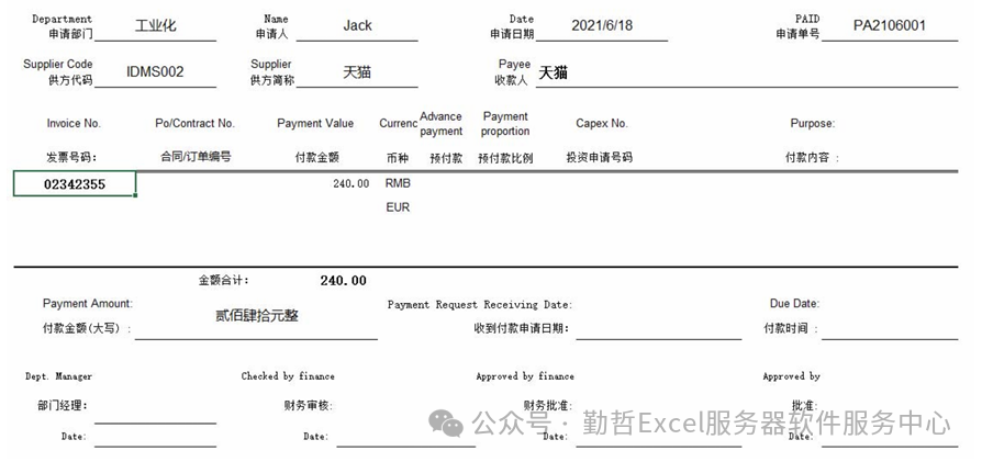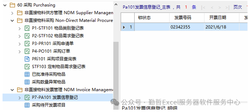然后在发票号码列,只会弹出相应供方的未付款的发票信息。保存后请打印,此部分应财务部门要求,需各部门经理手签。