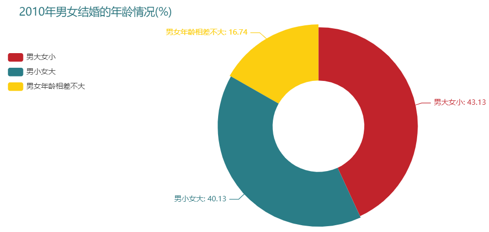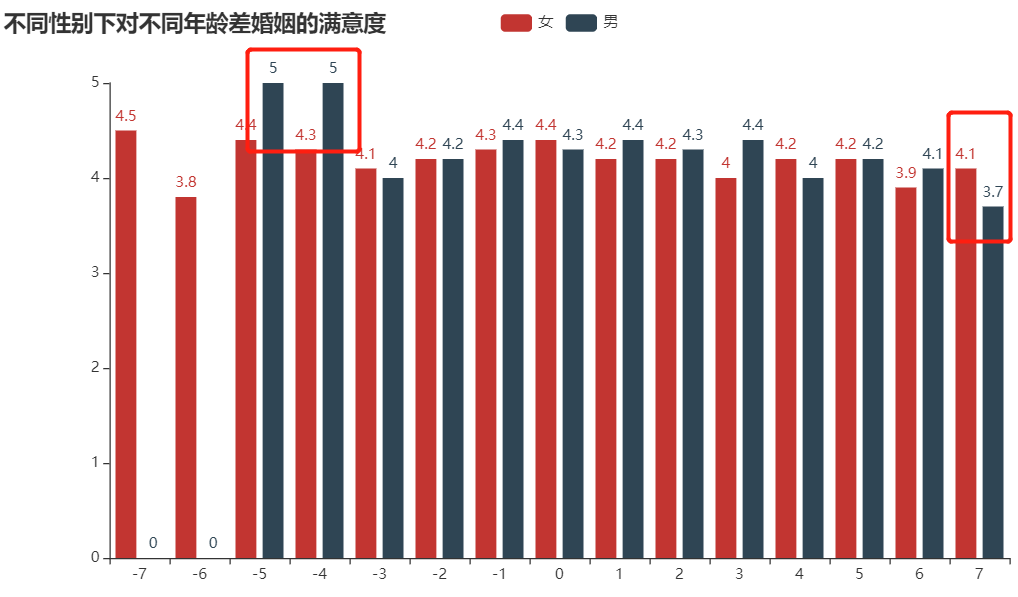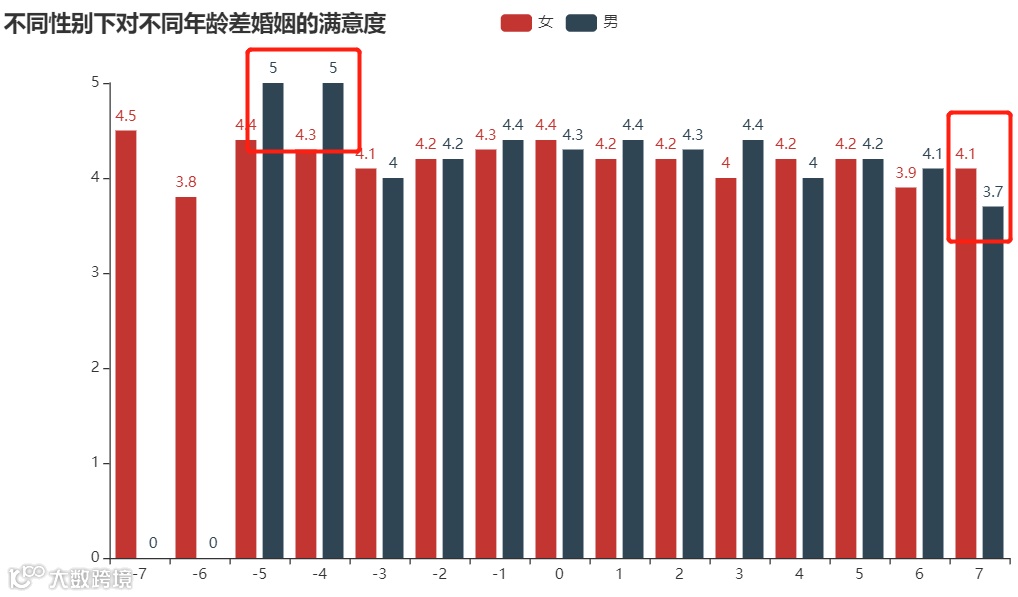 在研究者对80后、90后的夫妻双方年龄差统计时发现,伴侣间年龄差三岁以内的占已婚人群的70%左右,而在婚姻家庭中,男性比妻子年龄小3、4岁的被访者,对伴侣的满意度达到峰值;相对地,男性年龄比女伴年龄大7岁时,满意度最低。