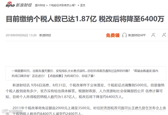 还可以从个税起征点这个角度来看,2018年以前个税起征点是3500元,此后调整至5000元,缴纳税款的人数从1.87亿下降至6400万。(最新数据有待确认)