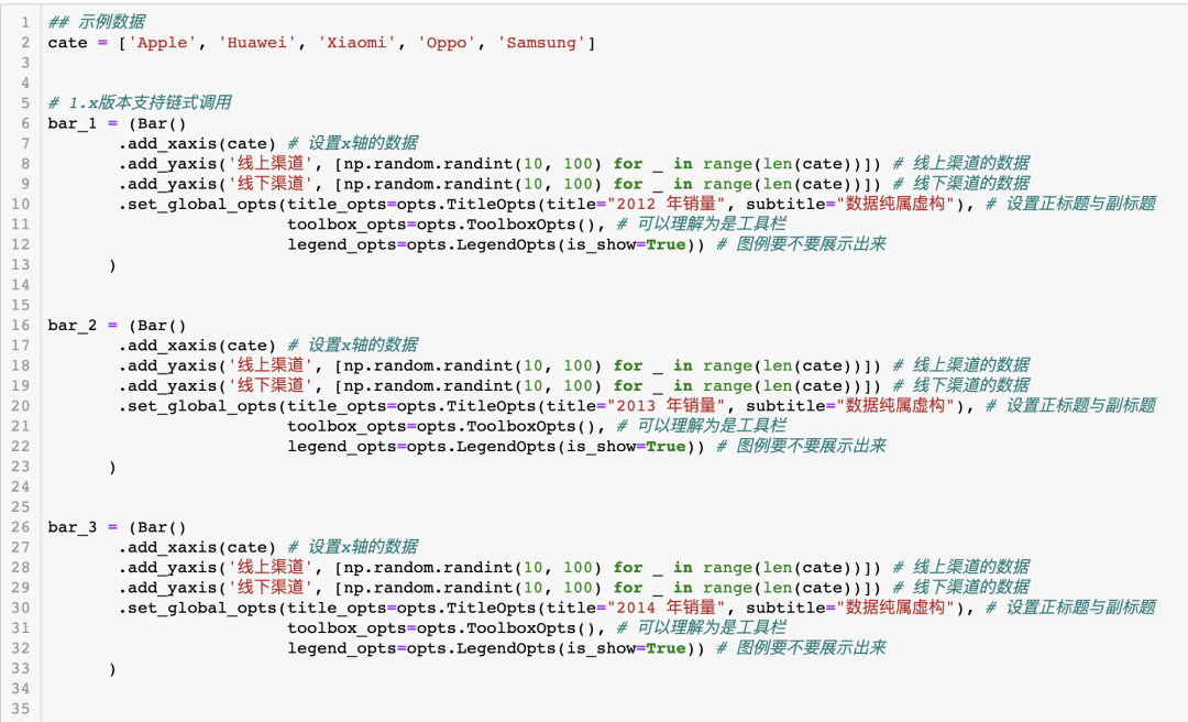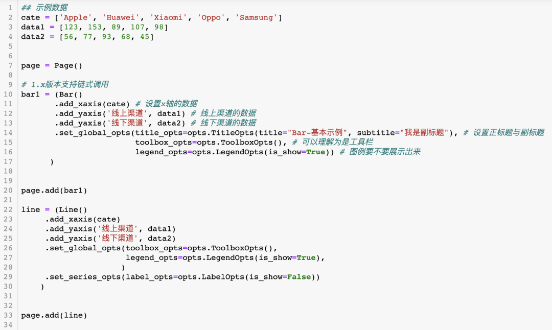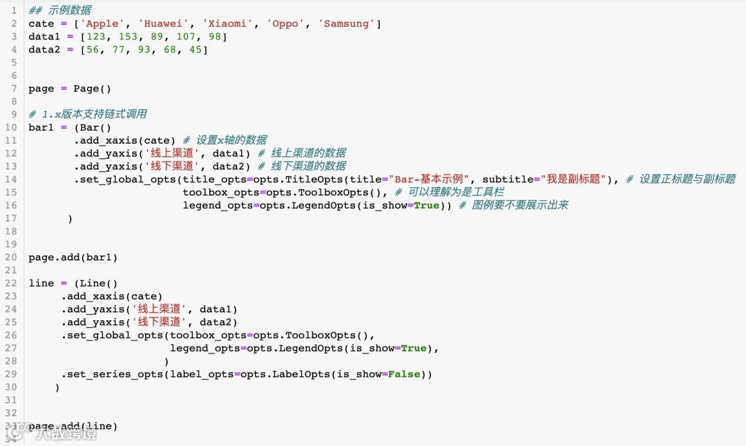 | 2 | 往里面添加具体图表 | page.add(bar) |