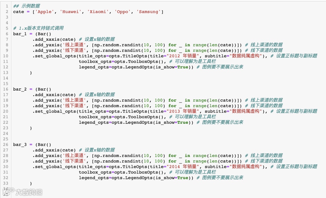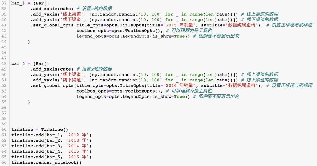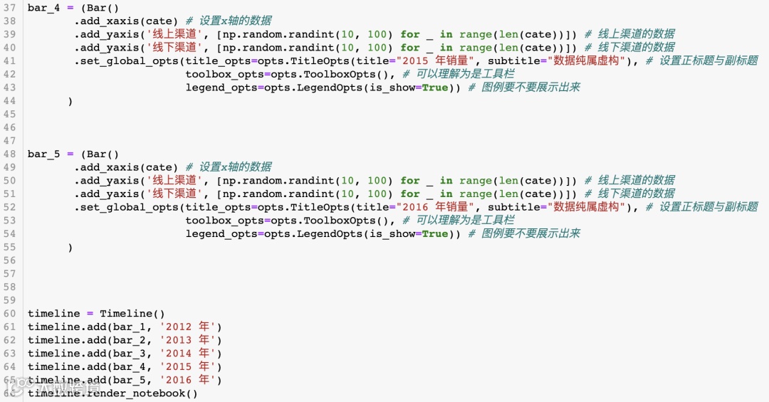 在Pyecharts中的Timeline()方法将提供时间线轮播多张图,例如