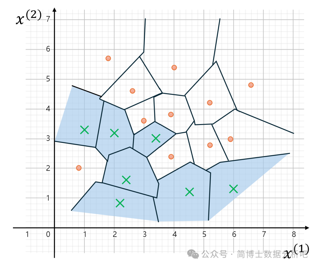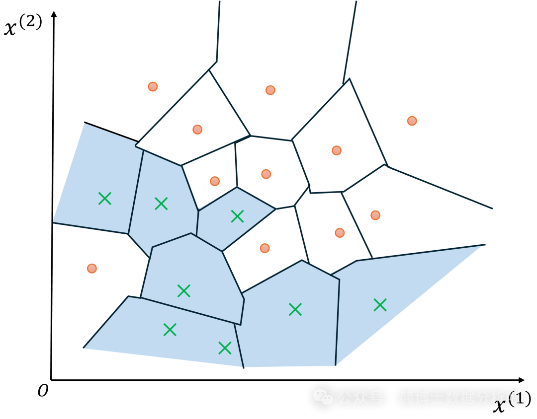 以 近邻法对数据集 进行空间划分的 Python 代码如下。