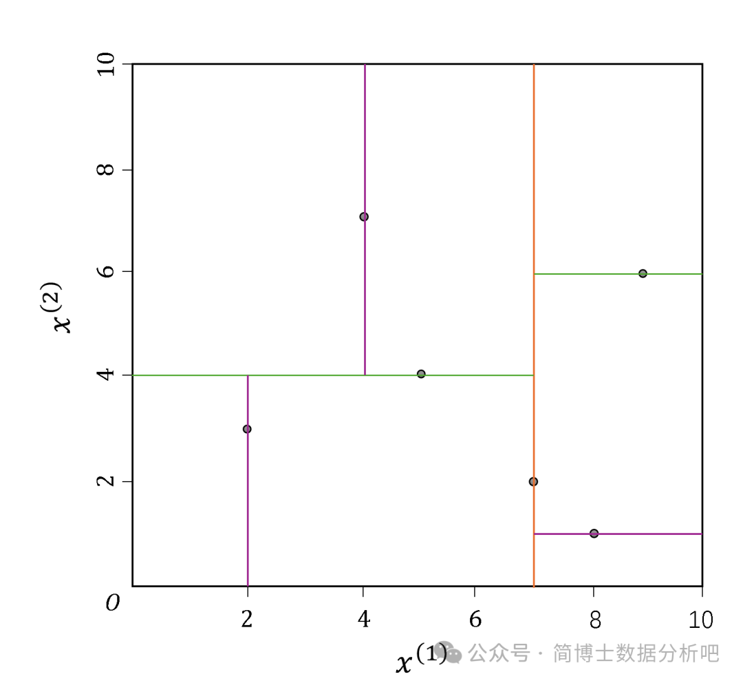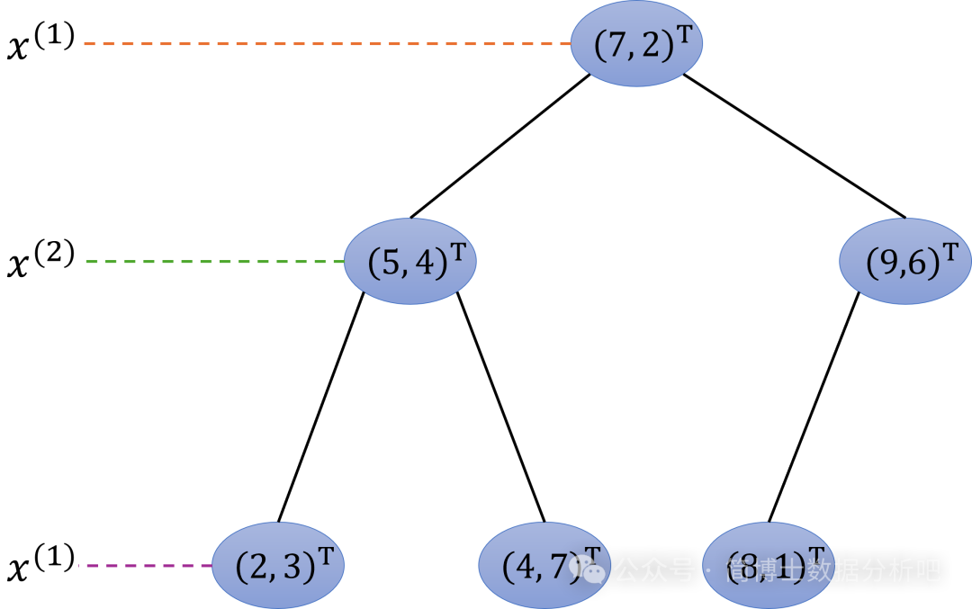 根据构造平衡 树的算法,对数据集进行划分得到如下结果。