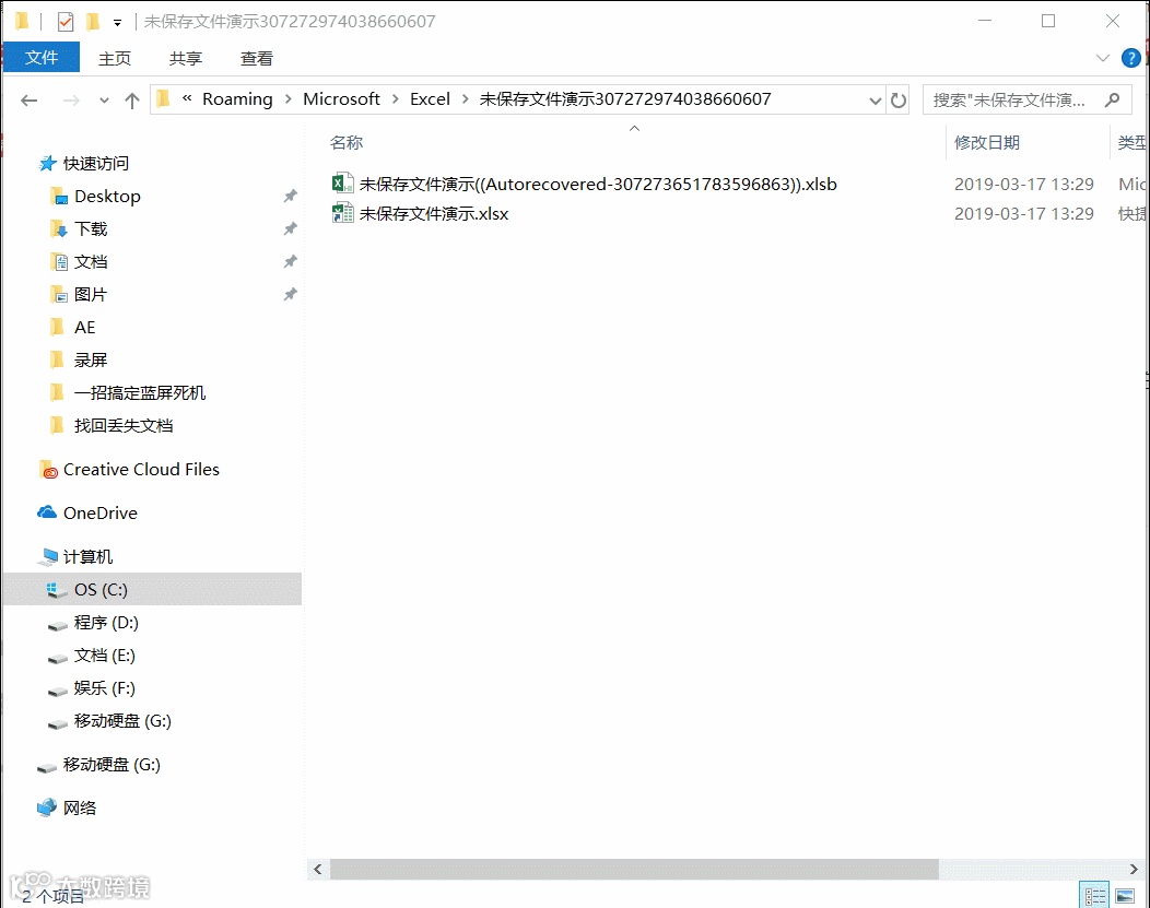 注意到上图绿框中有个文件路径,这个路径就是自动保存的文档所在位置了,打开Windows的文件浏览器,我们把路径复制进去,就可以打开自动保存的文档了: