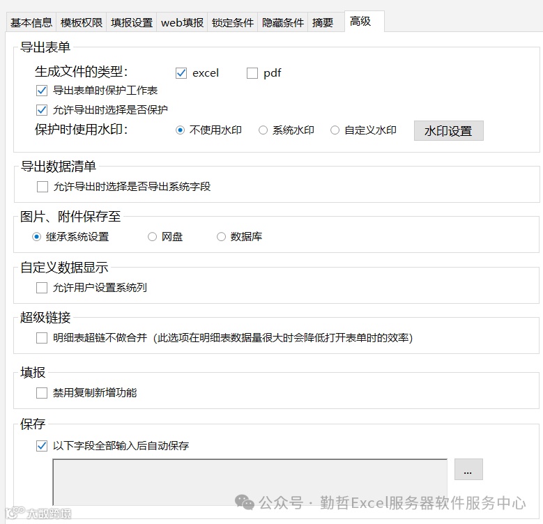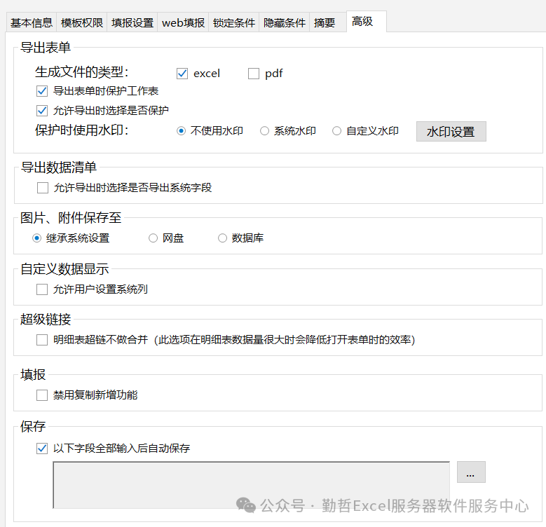 说明:在模板属性--高级--保存,勾选“以下字段全部输入后自动保存”。