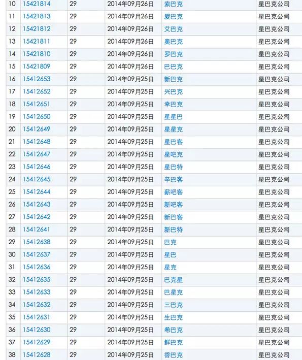 星巴克公司在防御性商标的注册上可谓脑洞大开,仅在商标国际分类“29”类之下,就注册了“索巴克”、“辛巴克”、“新巴克”、“兴巴克”、“星巴特”等几十个商标。
