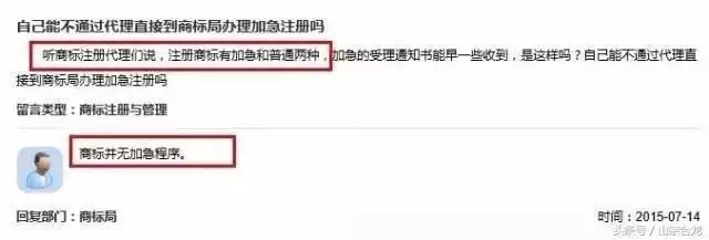 其实,国家工商总局商标局已经明确地答复了“没有商标加急注册这回事”,没有加急!没有加急!!没有加急!!!以下图片为证。