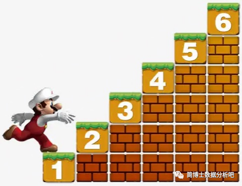 在咱们开始讲解AdaBoost前向分步算法之前,我们先来了解一下回归中的前向思想,这个思想顾名思义,就像下面的「超级玛丽」一层层爬楼一样,逐步升级。