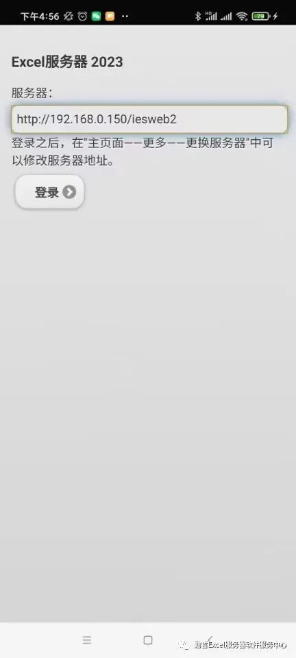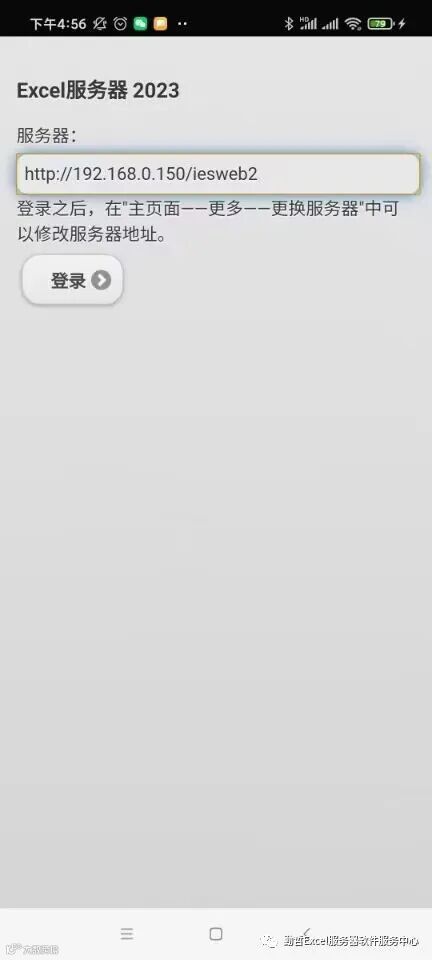 1、在手机上打开ESApp,第一次使用时,会出现下面这个界面,输入服务器地址,下图中 192.168.0.150 是举例,要替换成实际的服务器ip或域名,然后点击【登录】