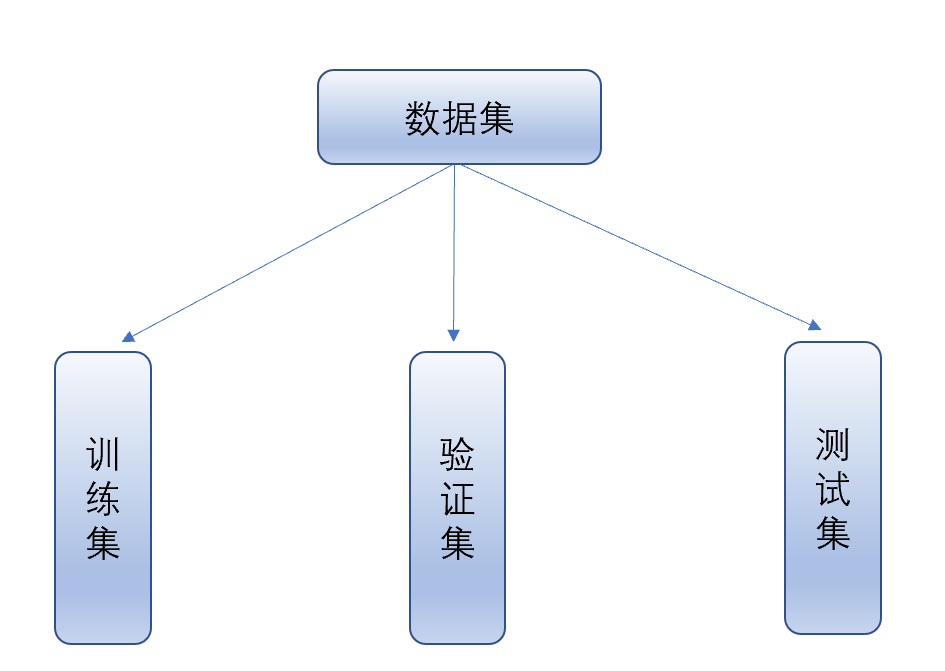 在样本的数据量足够充足的情况下,通常可以将数据集随机地分为训练集、验证集,还有测试集三部分。