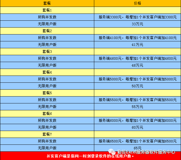 勤哲excel服务器V2022 套餐7 服务端6500元+并发数*6500元