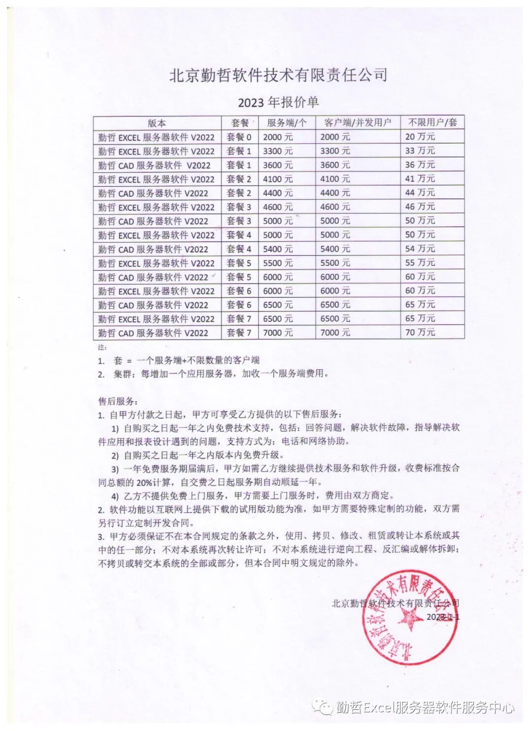勤哲excel服务器V2022 套餐1 服务端3300元+并发数*3300元