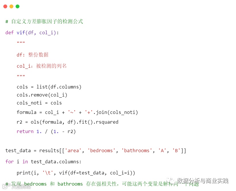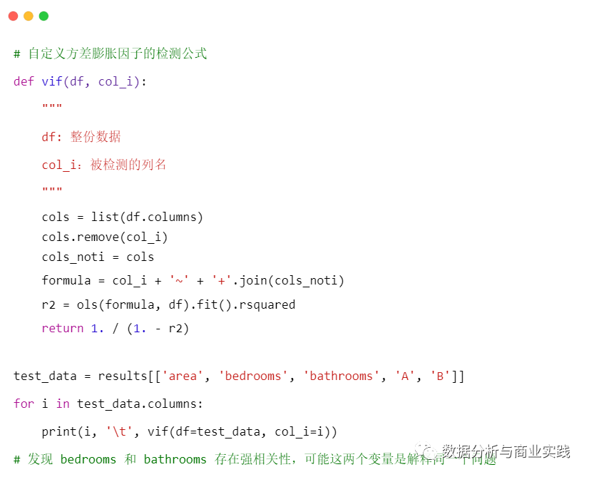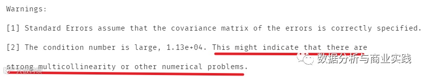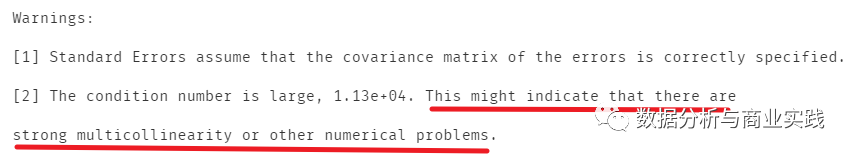 模型末尾提示可能存在多元共线性,需要处理一下,关于方差膨胀因子的原理趣析可参考这篇文章