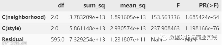 style 和 neighborhood 与房价 price 是否有关联可以使用方差分析