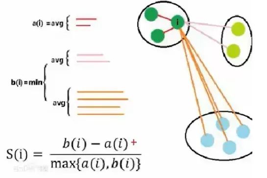 最好的分类结果:不同组之间的差距越大越好,同组内的样本差距越小越好。这样才能更好的体现物以类聚的思想(e.g: 同一类人的三观非常一致,不同类的人之间三观相差甚远)。因为组内差异为零的话,a(i) 便无限接近于0,公式分子便为 b(i),分母 max{0, b(i)} = b(i),所以结果为 b(i) / b(i) = 1,即越趋近于 1 代表组内聚类性和组间的分离度越好。