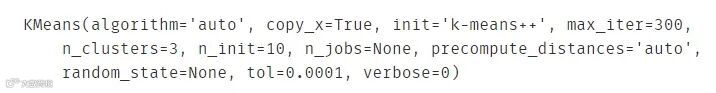 kmeans = KMeans(n_clusters=3) # n_clusters=3 表示聚成3类