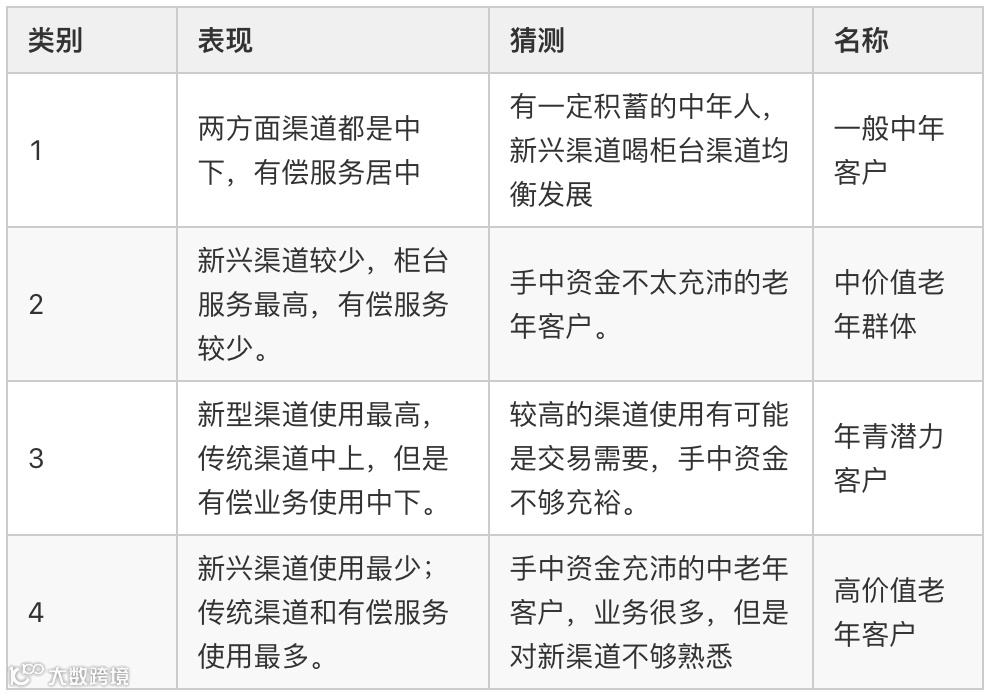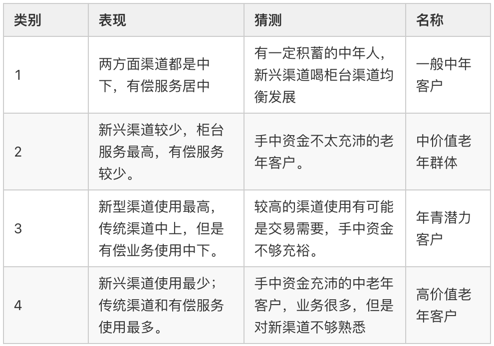也有一种相对没那么严谨的分类方法,这种方法通常会分 5~8 类,这样既能反映工作量(给领导看),又不至于太累(分出 12 类,还要对每一类的特征进行探索,描述性统计分析等)