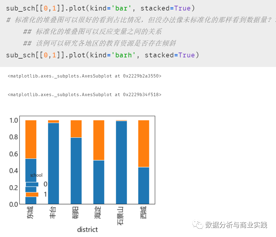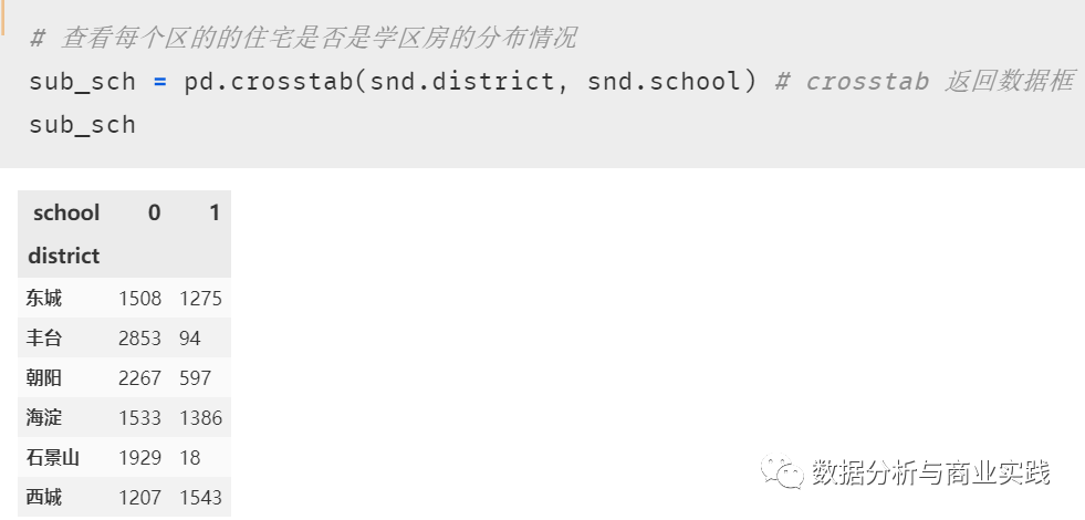 老板发给我有一份北京地区二手房房价的数据,要求帮他按照地区分一下类,每类的学区房与非学区房的占比情况汇报一下,以便能