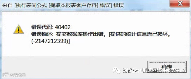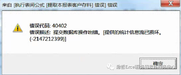 现象:有个模板填报的时候,会报如下错误:提供的统计信息流已损坏。