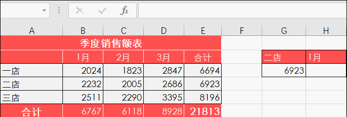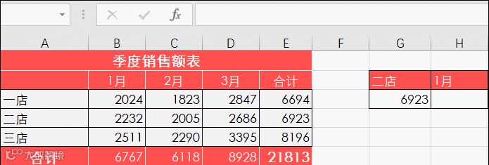 我们来梳理一下这个逻辑过程,我们先用VLOOKUP去查找店名,找到二店那一行之后,还需往右去查找2月位于第几列,使用match函数动态获取列号,这样,就实现了行列均不确定的动态查找!