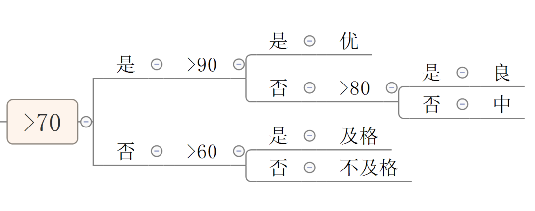 =IF(C13>=70,IF(C13>=90,"优",IF(C13>=80,"良","中")),IF(C13>=60,"及格","不及格"))