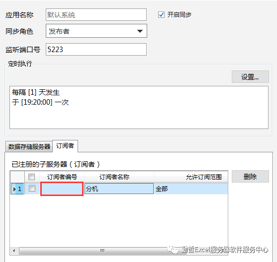 在主服务器A中,可以看到已注册的订阅者,此时“订阅者编号”为空,默认允许订阅范围为:全部。