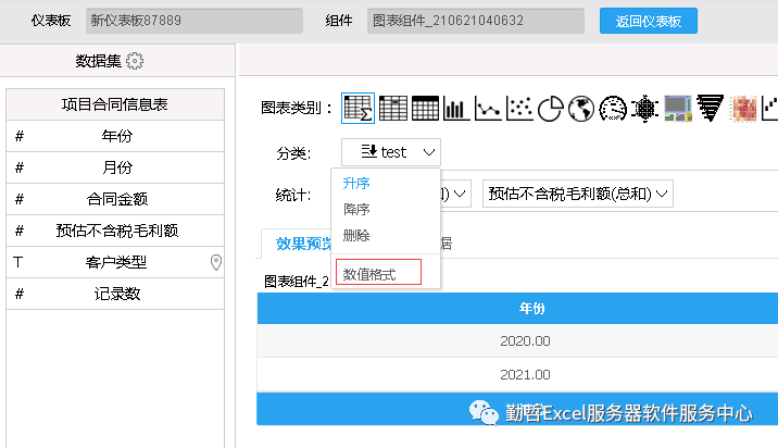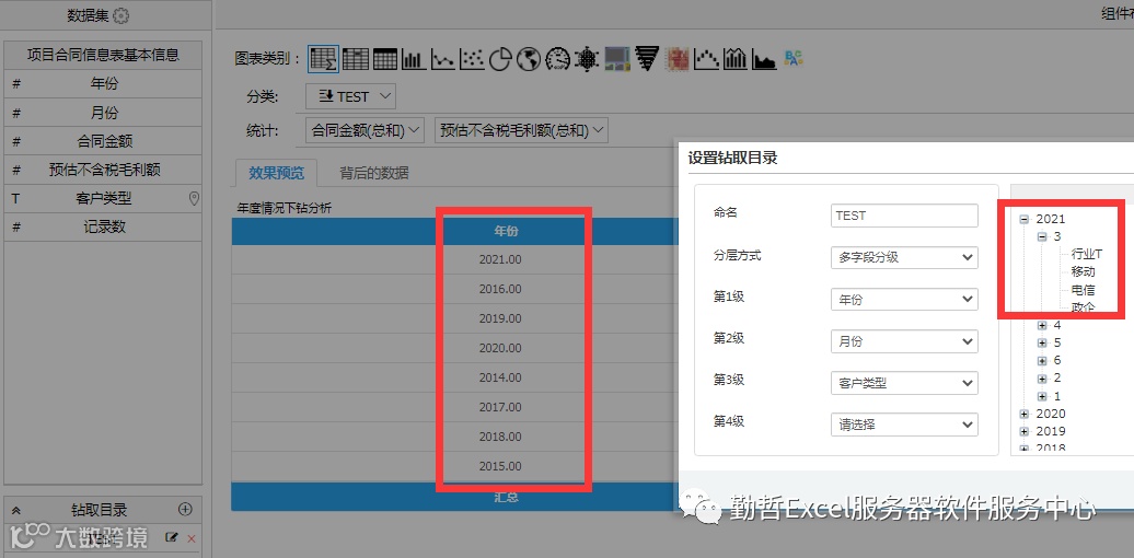 现象:使用钻取功能的时候,年份值(实际数据类型是整数)显示成了小数。如下图: