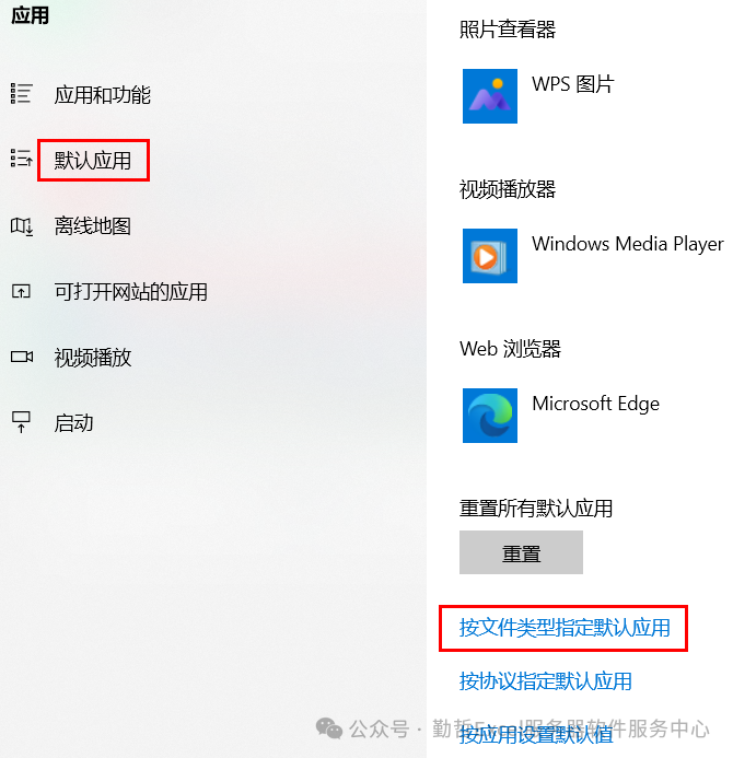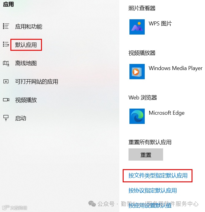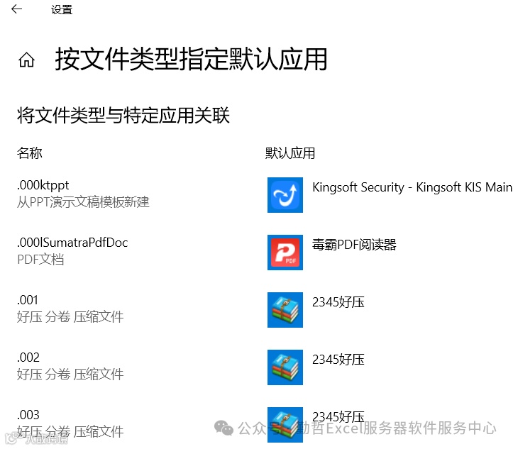 继续点击““按文件类型指定默认应用”,进入“文件类型与特定应用关联”界面。