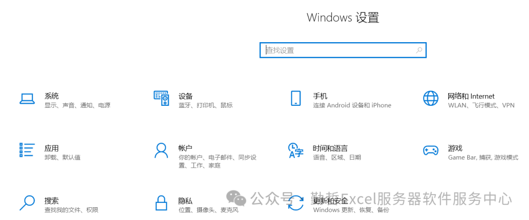 首先点击「开始」菜单,找到齿轮图标,或搜索“设置”,进入“Windows设置”主界面。(也可以直接使用快捷键:Windows+I)