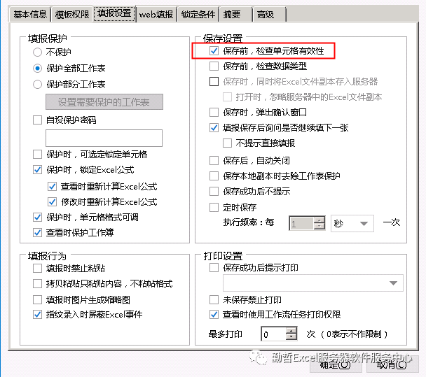 此时我们可以借助excel服务器提供的功能“保存前,检查单元格有效性”来进一步控制。