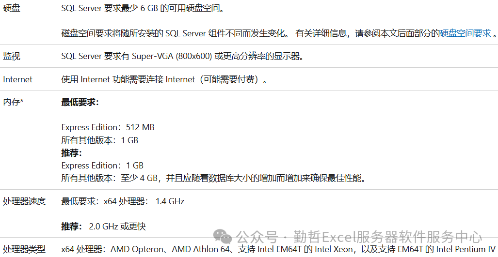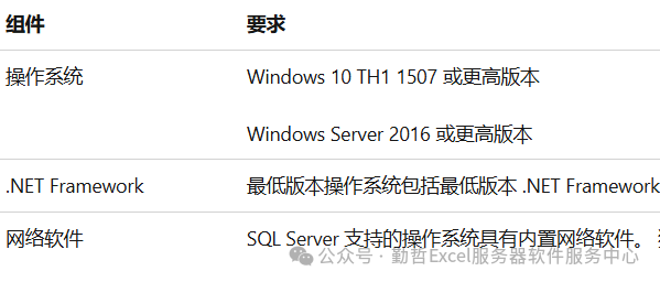 下面列出了在 Windows 操作系统上安装和运行 SQL Server 2019 (15.x) 至少需要满足的硬件和软件要求,请参阅。