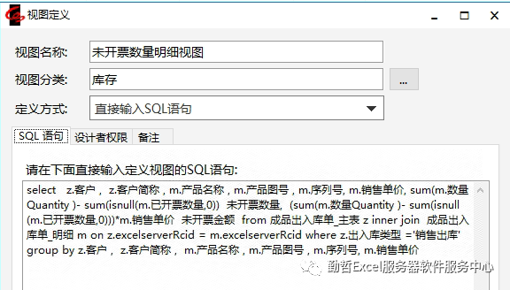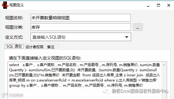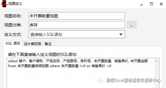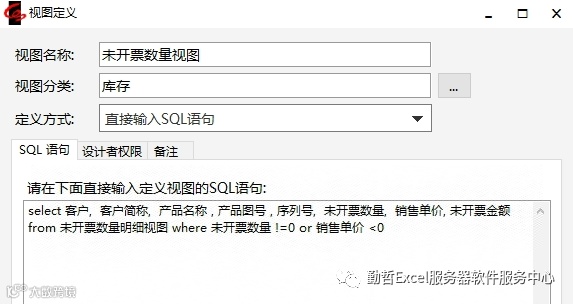 定义方式下拉选择“直接输入SQL语句”后,就可以开始定义视图了。