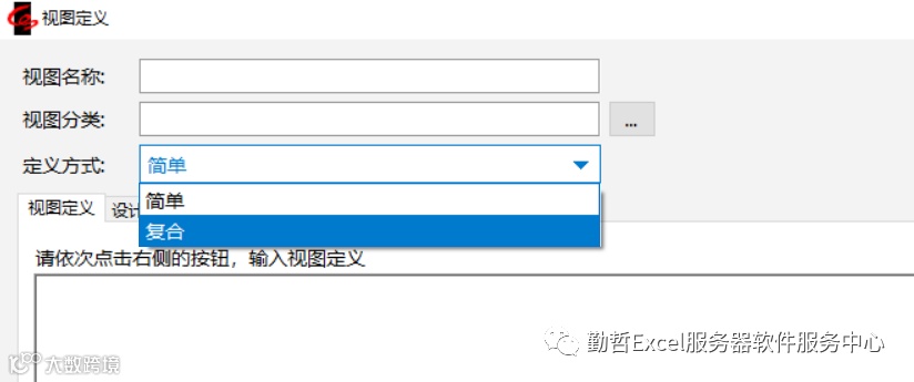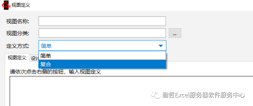 说明:简单和复合的写法类似于我们学过的提数公式,在此不再累述。其中:复合的功能相当于sql中的union all,就是将不同数据表或视图里面的数据组合在一起。