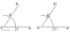 题目:已知∠AOB,利用直尺和圆规画∠A′O′B′,使∠A′O′B′=∠AOB(保留作图痕迹)。