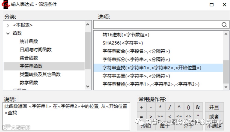 说明:此函数返回字符串1在字符串2中的位置,从开始位置查找。如下图: