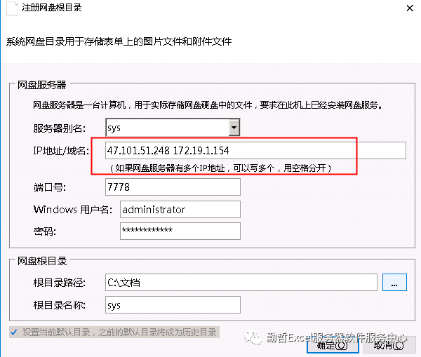 三、登录客户端,注册系统网盘。在IP地址/域名位置处,输入外网IP或域名。