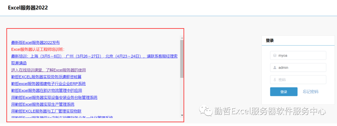 勤哲Excel服务器软件服务中心