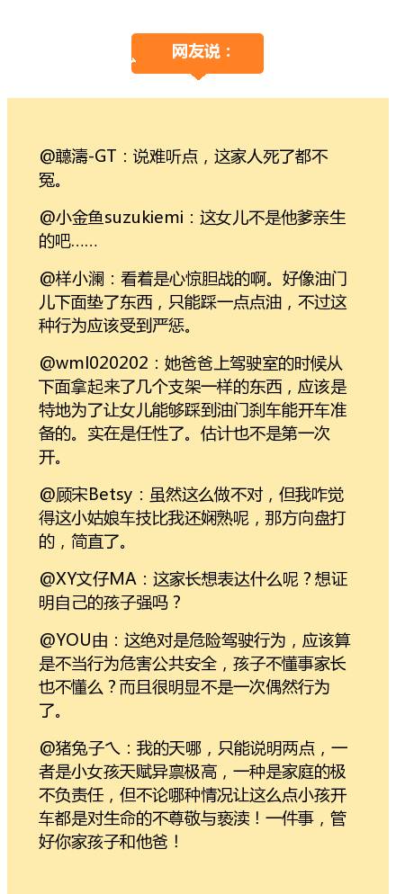 一位年幼的小女孩驾车穿行于车流之中。坐在后排的爸爸还不断说,“好好开你的车”。视频一经传播,惊呆众人啊。