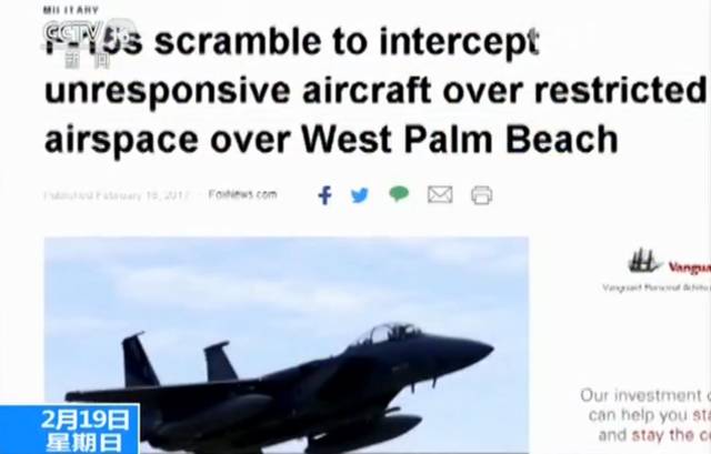 据美国福克斯新闻频道消息,当地时间17日,一架未对飞行询求作出应答的飞机,飞过美国总统特朗普在佛罗里达州马阿拉歌(Mar-A-Lago)的官邸附近。两架F-15歼击机出动拦截这架飞机。