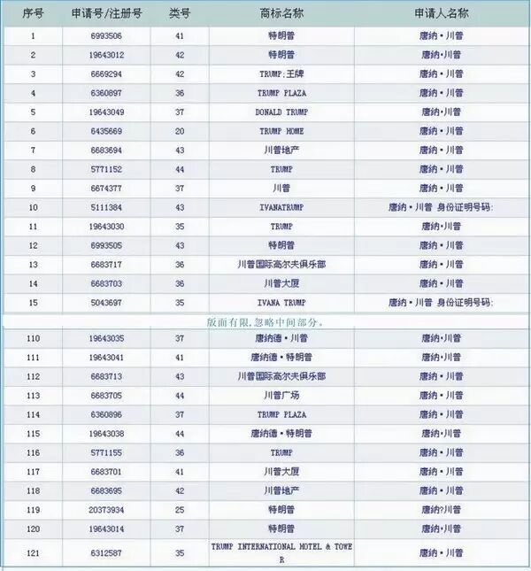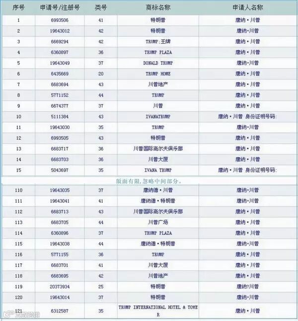 1、美国新总统唐纳德·特朗普为其名字注册了超过120个中国商标。